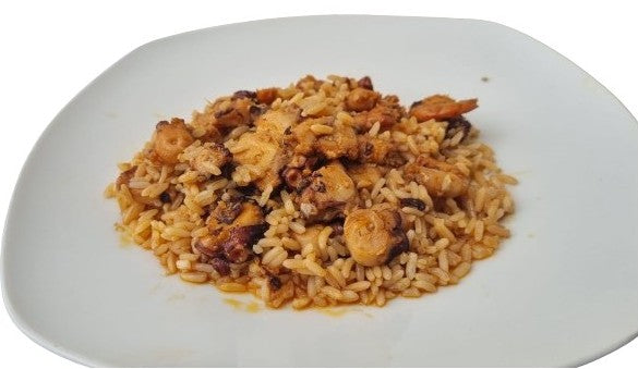 Arroz 33%, PULPO 32%, GAMBA 16%, aceite de oliva 6%, vino blanco 6%, ajo 5%, sal 1%, pimentón 0,60%, cayena 0,20%, laurel 0,02%