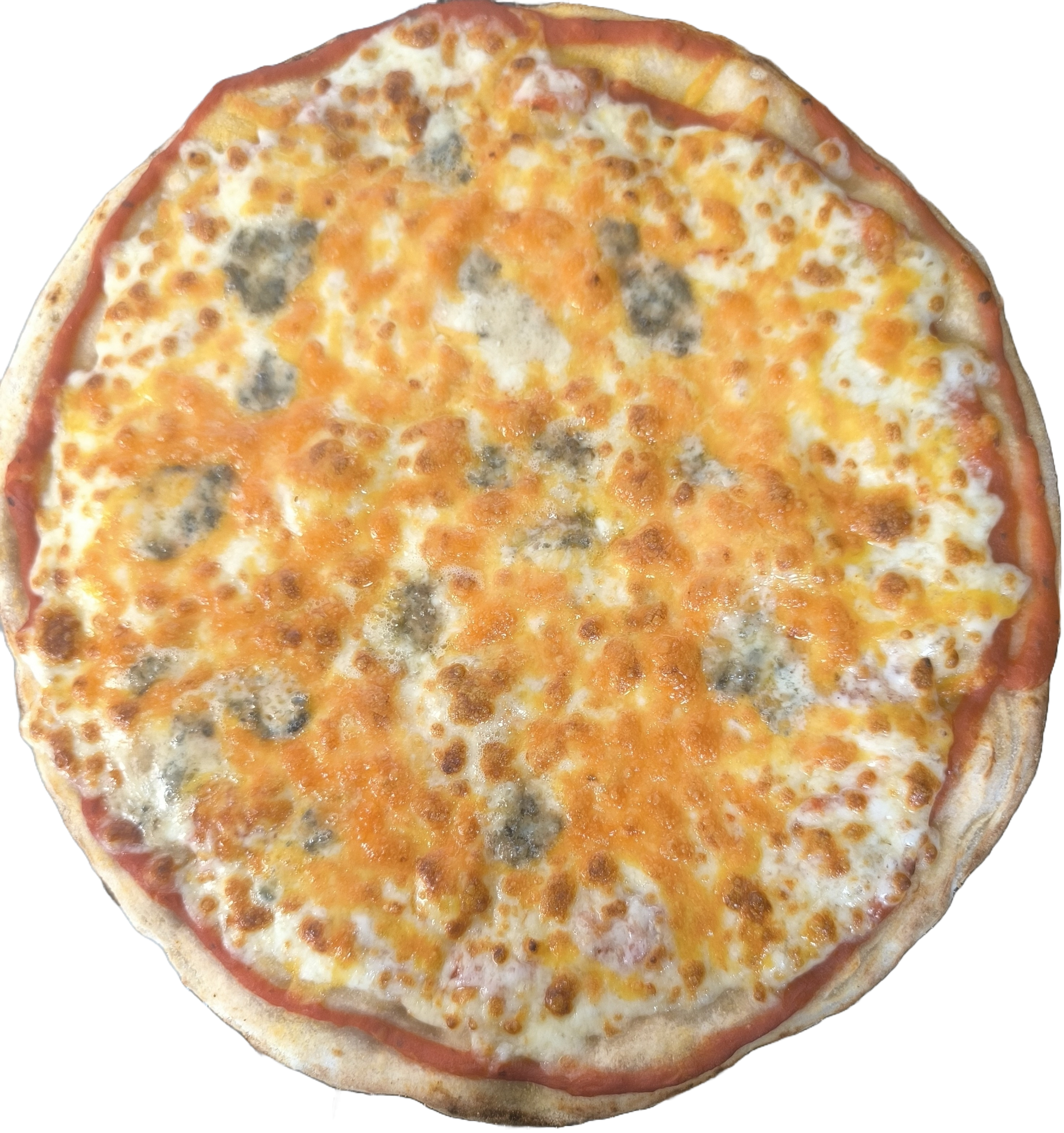 Mozzarella 100%, tomate, roquefort, cheddar y orégano. 33 cm